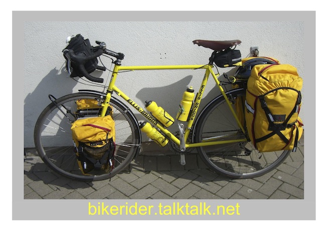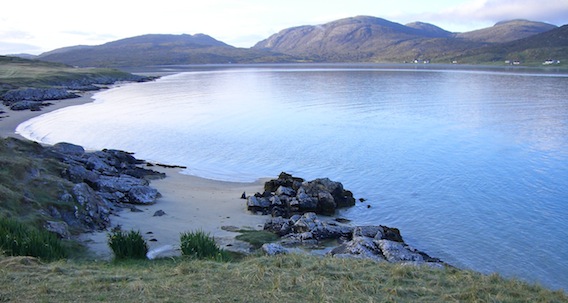 Cycle to Lochboisdale and camp or With a great sense of relief, the onward bus also turned out to be a coach. Having transferred buses and set off south, I had a sudden compulsion to camp on Vatersay in order to complete the full Island tour, top to bottom. The driver told me it would mean a ride of about eight miles, so at 6.00 pm as Daliburgh came into view, I decided to get off the bus and take a chance on reaching Eriskay in time for the ferry. I reasoned that I could always cycle back round to Lochboisdale for the 9.00 pm ferry if all else failed. With the bags fitted in a desperate hurry, I roared down the road with less than 50 minutes to do the estimated eight miles, all against a slight headwind. I crossed the causeway followed by a final agonising climb before the brake block burning descent down the steep hillside to the slipway. I made it with only a few minutes to spare, the ramp went up behind me. I watched rain spots splashing on the surface of the water as we made the short crossing to Barra under a darkening sky. I cycled round the island anti-clockwise and turned right onto the Vatersay road. Half an hour later the road ran out at the south end of the Outer Hebridean Island chain. With the tent up on the dunes (NL632952) I walked over to the west beach where the Atlantic was rolling in on a fresh wind. After supper of meatballs & pasta and hot chocolate I crawled into my sleeping bag at 10.30 pm with the alarm set for 5.00 am. This time I'd built in a 30 minute contingency for the 7.00 am ferry.
