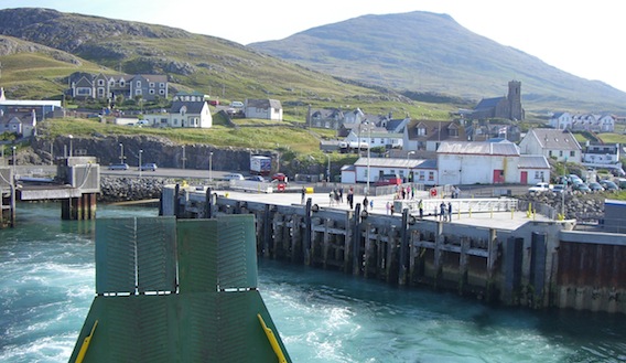 Ferries: The islands seem to get right under your skin. The landscape ranges from the most stunning coastal scenery with white unspoilt beaches and crystal clear water, to empty moorland nothingness. It's just beautiful. The weather becomes a definite preoccupation, unpredictable with periods of glorious hot sunshine, downpours, wind and calm. The wonderful offshore sunsets were totally unforgettable. All the people I met on the islands were extremely helpful, kind and friendly. The number of cyclists I met proved what a wonderful place this is to go touring with a bicycle. I did become fit enough to cycle over the Cliseam and did indeed camp at Luskentyre in the sunshine.