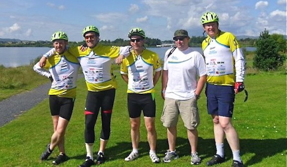As we were leaving the car park, Gav decided to ride up against the curb and lost balance with no permanent damage done.The A922 took us north to Milnathort where the climb started up to Middleton and Newhill before the descent into Glenfarg. The B996 then followed alongside the M90 before passing underneath and heading down through a wooded valley to meet the A912. This glorious descent continued down the valley where it levelled out at Aberargie. In the sunshine, we crossed the flat River Tay flood plain to reach Bridge of Earn, passing once more beneath the M90. We'd arranged to meet Gav's family just past Bridge of Earn at Brig Farm Shop, which we found on the left. There was a decked veranda at the back of the shop with picnic tables and the lovely shop lady very kindly allowed us to sit at the tables to eat our own food. Gav's wife Christine unloaded the bags and set up a magnificent banquet which we scoffed whilst sitting in glorious sunshine and picturesque surroundings. The lovely shop lady and staff had their pictures taken with the torches. Carol kindly bought us £40 worth of cake. Christine's friends had connections with Clydesdale Bank which was exhibiting at the Perth Show that weekend. Somehow through this connection, we'd been offered a place on their stand. We cycled along the A912 up to the motorway intersection at Craigend and down into Perth. Sure enough, the 150th Annual Perth Show was in full swing in South Inch Park by the river. We waited by one of the gates whilst permission to enter was sought from the jauntily dressed marshall. No amount of bribery, cajoling or pleading had any effect although he did appear to have some sympathy for our cause and kindly let Gav in to find the Clydesdale stand. We waited quite a while. Alex managed to locate us in Perth Prison in his Facebook 'check-in'. Haydn took the opportunity to have a lie down on the grass. Alex turned the van round and parked in front of us. As 4x4s pulling livestock trailers queued to exit the showground, Alex started to wave them out when there was nothing in his rear view mirror. I watched as a motorbike approached from behind and started to overtake the van whilst Alex falsely gave the all-clear to the next vehicle, my heart was in my mouth as I imagined the impending collision. Fortunately, the driver saw the motorbike and stopped, unfortunately the next vehicle in the queue was a policeman on a motorbike. The policeman gave Alex a ticking off but was great, Alex jumped out for a chat and we made another friend. Haydn's kids arrived and then his wife Jo turned up with show passes. All this had been a slight mystery to me so nothing at this stage was a surprise. The marshall let us in and kindly showed Alex where to park just inside the gate. It was packed. We pushed the bikes past horses, cattle, the showground arena, pigs and agricultural equipment of all kinds. The Clydesdale Bank stand was a tent with tables and chairs set out in front with a red McCormick Farmall tractor as a showpiece. I propped my bike up against the tractor and helped with the torches in glorious hot sunshine. The Clydesdale's Irn Bru was very welcome. The unexpected and slightly surreal nature of this experience was not lost on us. The Bank people had their photos taken with the torches and everyone seemed very happy. Show rules prevented us from touting for sponsorship but donations were allowed, needless to say, we did ok on the fundraising front. Eventually we said good-bye to our hosts and retraced our steps back to the van. We followed Alex on a tour of Perth before crossing the Tay on the A85. A road sign pointed to the A93, Blairgowrie, Glenshee and Braemar which sounded decidedly hilly. Alex and Stewart hastily consulted the map and we turned round towards to the A9. Back across the Tay, we left Perth on the A912 and rejoined the A9 at a roundabout and started our journey into the Highlands. We followed the Tay until the ascent started at Luncarty, we climbed through woodland and reached the summit at Kingswood. The road then descended back down to the Tay and crossed over the railway line. Just before Dunkeld, a train, 'The Northern Belle' was held up on the track and passengers waved at us through the trees as we cycled by. There was a 100 feet climb and descent as the A9 cut through the valley side, followed by five or six miles of very pleasant undulating road as the River Tay gently gained height to meet the mountains. During the dual carriageway stretches we were protected by Carol in the bus behind us. At one point near Dowally, James was looking decidedly peaky and in clear need of sustenance. The other three were ahead with the van so didn't notice when we stopped. I offered James the last of my energy chew which he consumed manically. I had full sympathy but the scene was really comical when James woofed down Carol's slimfast, I had to laugh. We caught the others up in lay-by 23 and had a more prolonged session eating food from the van. Colour returned to James's cheeks. We stopped again just before the right turn to our hotel, in order to gather and plan the manoeuvre across the A9 safely. The turn took us onto General Wades Military Road and with just a mile to run, Haydn had a puncture. It seemed stupid to start repairs so close to our destination and Haydn quite rightly refused to accept a lift. After a certain amount of faffing, Haydn decided to ride Jen's bike to the hotel. Dalshian House was down a little lane to the left set in lovely gardens. The owner met us on the steps and allocated rooms. He was very helpful and booked us a restaurant in Pitlochry for an evening meal. Stewart made us all protein shakes to the usual recipe. After a hot shower, we all gathered and travelled into town in the bus for our meal at The Auld Smiddy Inn. Haydn ordered Guinness with a flake which arrived with a chocolate straw instead, through which he proceeded to drink the Guinness. We had a lovely meal and a good laug