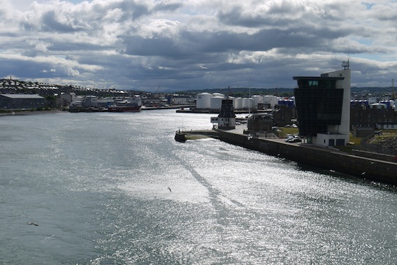 Eventually we approached Aberdeen and I started to shorten the distance between me and the bike by picking my way carefully along the carriages. I retrieved the bike and loaded up the bags on the platform before following the throng through the station barrier. The adjacent Union Shopping Centre was busy as I wheeled down the right hand mall, through the shopping throng towards the car park. I started to ride along the parking lanes following signs for the exit, not expecting it to be barrier controlled.