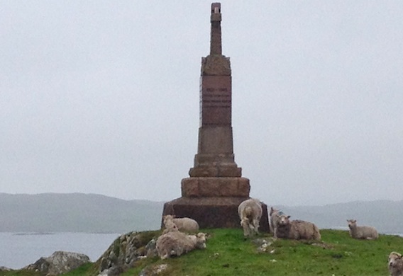 The road starts to turn inland at Brettabister where I stopped to take a look at the imposing Nesting war memorial. The sheep were using it for shelter against the strengthening wind. |