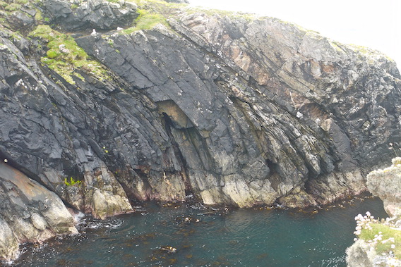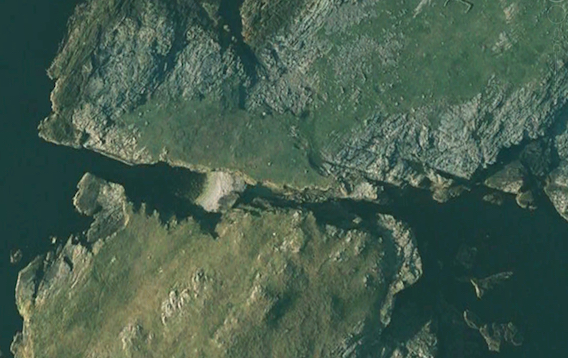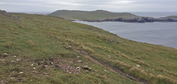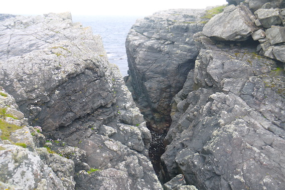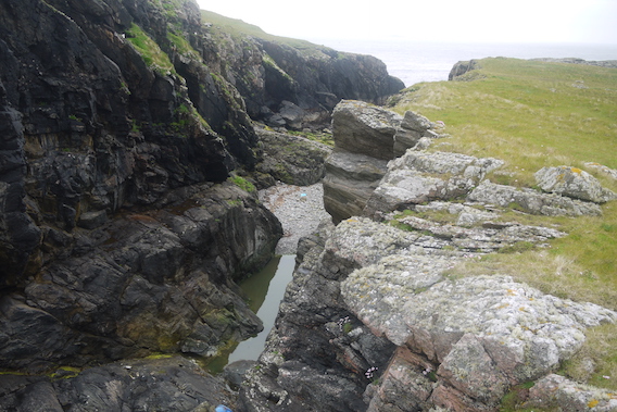 My next aim was to walk south west along the coast to have a look at da Steig, a collapsed cave that separates the island of Mio Ness from the mainland. I'd studied this feature on my OS map and Google Earth to work out whether it was possible to traverse and gain access to the south of Mio Ness. |