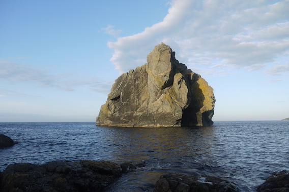 The bag was a wise investment to protect my purchases from the now gentle drizzle that made the trek back just that slightly more tricky. It seems incredible now, but the thought of my new breakfast ingredients filled my senses and I arrived back at the camp site in double quick time. I sat and watched the fulmars racing across the sea whilst consuming two brupot bowls full of cornflakes in quick succession. Eventually my cornflake lust was satisfied and I began to contemplate the day ahead whilst wandering idly northwards drinking a pot of tea and taking-in the wonderful coastline. The views were tremendous and it became obvious that I should take advantage of the dry weather and mount an expedition around the island.