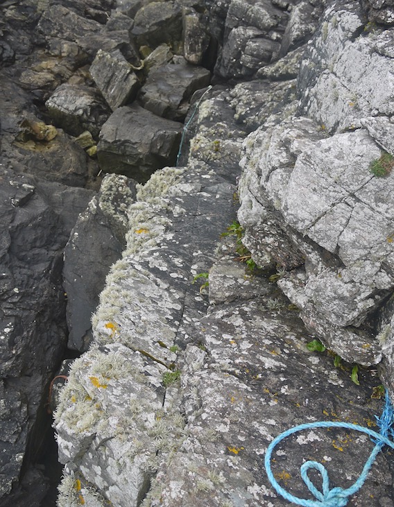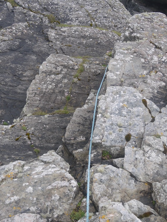 After a mooch around, I discovered a blue rope that ran over the rocks before disappearing tantalisingly over the edge. Ever the explorer, I decided to follow it to see if it offered a possible route down.