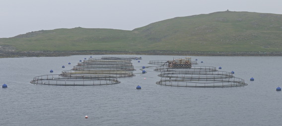 The exposed rocks were similarly inclined giving a sharp edged spiky appearance. I saw a number of sea birds, together with a very cheeky cormorant. My progress was slightly quicker than before, mainly due to the driving rain that prevented any lingering. Eventually, the fish pens in West Voe came into view. |