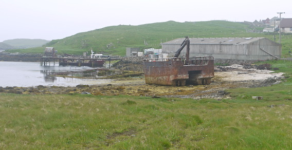 I had intended to walk to the head of West Voe and up to the north coast for a view of Wether Holm. As I reached the jetty though, the weather became more inclement and I was persuaded to head straight back along the road.