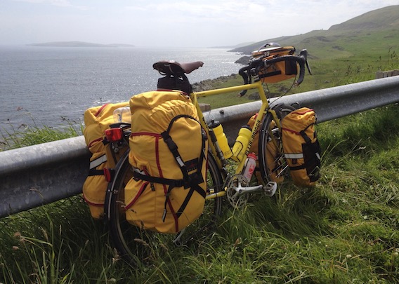 To my horror, I realised that the two end tent poles were not on the bike. These carbon rods are too long to fit in the pannier and my technique for carrying them was to attach them to the bike's rear rack using elastic bands. Thinking back, I'd obviously forgotten about them when packing up that morning and they would still be neatly laid on the grass on the Out Skerries.