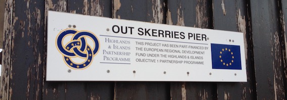 It was nice to see that European money had been invested in the Islands's economy. The skip that I'd seen being filmed the day before was picked up by fork lift truck and deposited next to the ferry, before being hoisted into the hold.