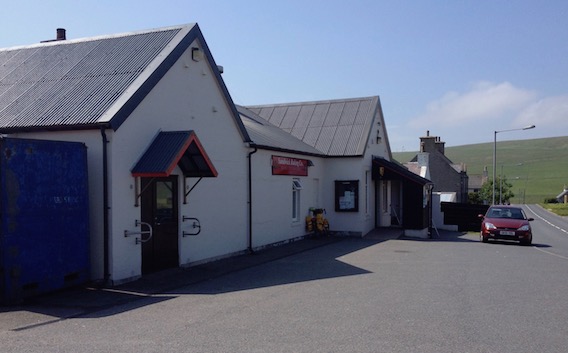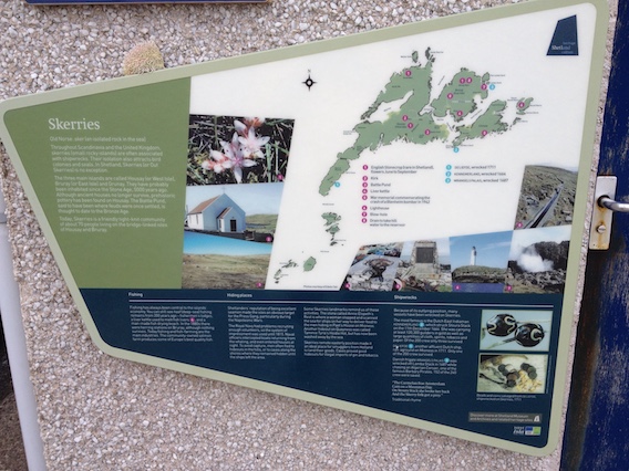 There was an interpretation board at the Sandwick turning, describing Mousa Sound, Sandayre Pier, Sandlodge Copper Mine and the archaeology of Mousa with its world famous Broch. Turning left, I cruised down the hill towards Sandwick and came to a halt outside the Sandwick Baking Company in the sunshine. I propped the bike up against the wall and went into the shop to buy provisions.