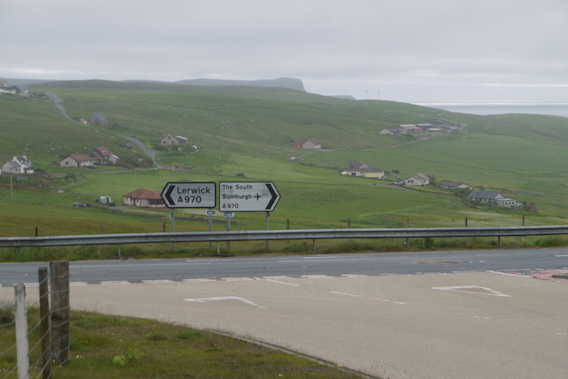 I was heading to Scalloway to see where the Shetland Bus operations were located after their move from Lunna in 1942. A few minutes after rejoining the A970, Jeanette drove past with a wave and I watched her little car disappear into the distance.