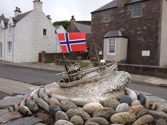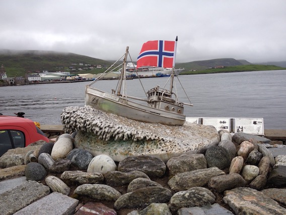I retrieved the bike and went in search of the Shetland Bus memorial by the waterfront along Main Street.