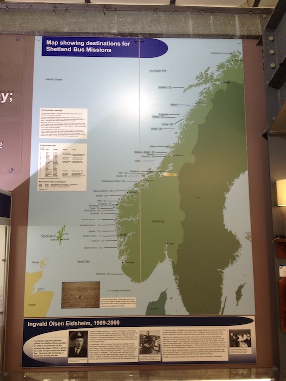 I resumed my journey to the museum and plonked the bike in the same place again against the wall. The museum is great. The exhibits were really engaging, however my specific interest was in the Shetland Bus displays and huge maps that explained the extent of the operations in the North Sea.