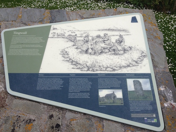I cycled out of Scalloway heading north up the Tingwall valley following a route I knew quite well. As usual, I stopped at the boat house by the Loch of Tingwall and had a look at the interpretation board. The little peninsular in the loch was once an island known as Ting Holm which served as the location for a parliament until the 1570's. |