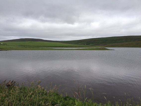 I packed up a few things and set off up the road to where it joined the main A970 Lerwick Road. There were fine views down Dales Voe.