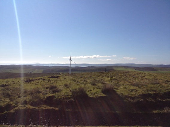 I noticed a track going off to the right towards the turbines so this seemed like the obvious route. Half a mile further on, there was a locked gate marking the boundary of the wind turbine site itself. I wasn't expecting there to be any access problems as the wind turbines near home are open to all. I was in two minds what to do, but in the end I decided to climb over and carry on. I knew it was private, but I wasn't doing any harm and the worst that could happen would be that someone shouted at me to leave.