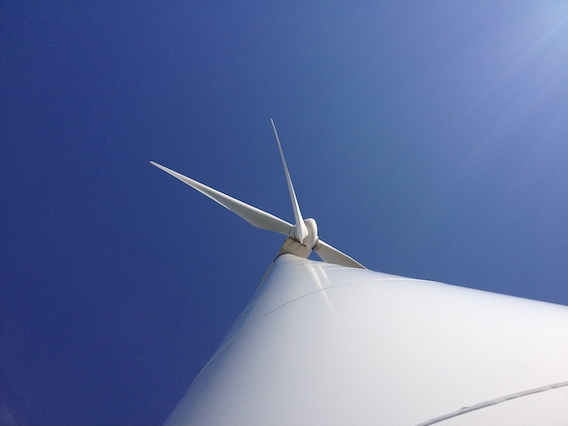 Wind turbines up close are really quite graceful, especially when set against a blue sky.