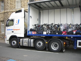The bikes were loaded on the back of a curtain sider artic, donated for the weekend by Bedfords Transport.